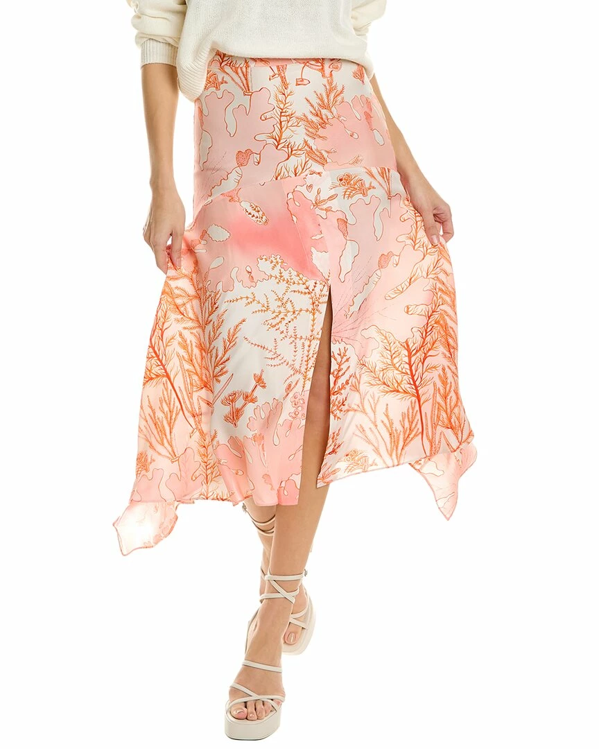 - Ariah Silk Midi Skirt In Pink Multicolor With Handkerchief Hem And Vented Front