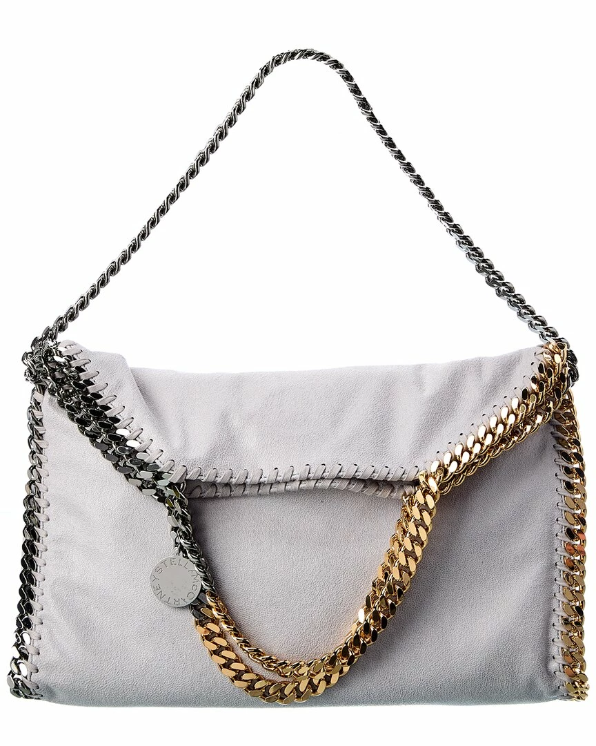 - Falabella Fold-Over Tote In Grey Vegan-Friendly Faux Suede With Gold-Tone And Silver-Tone Hardware