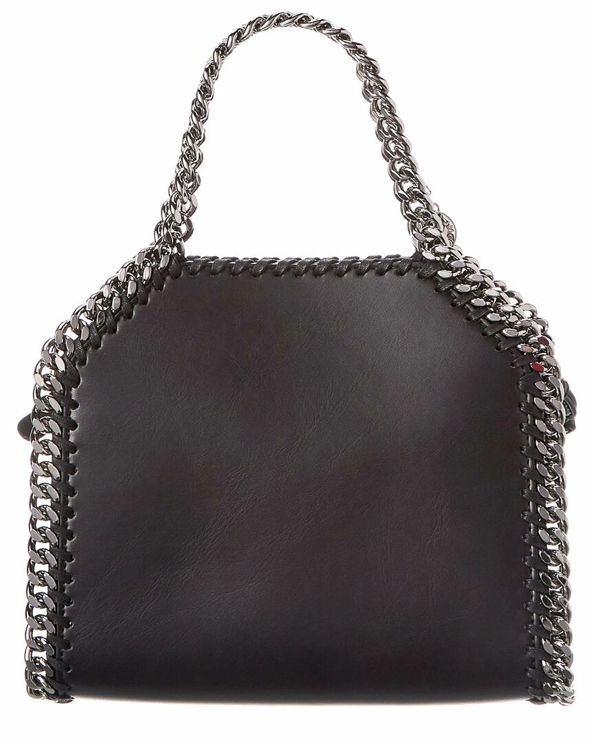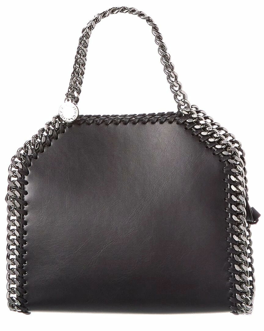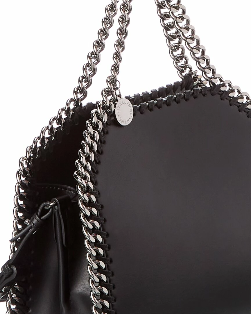 - Falabella Tote In Black Vegan-Friendly Faux Leather And Silver-Tone Hardware With Chain Trim