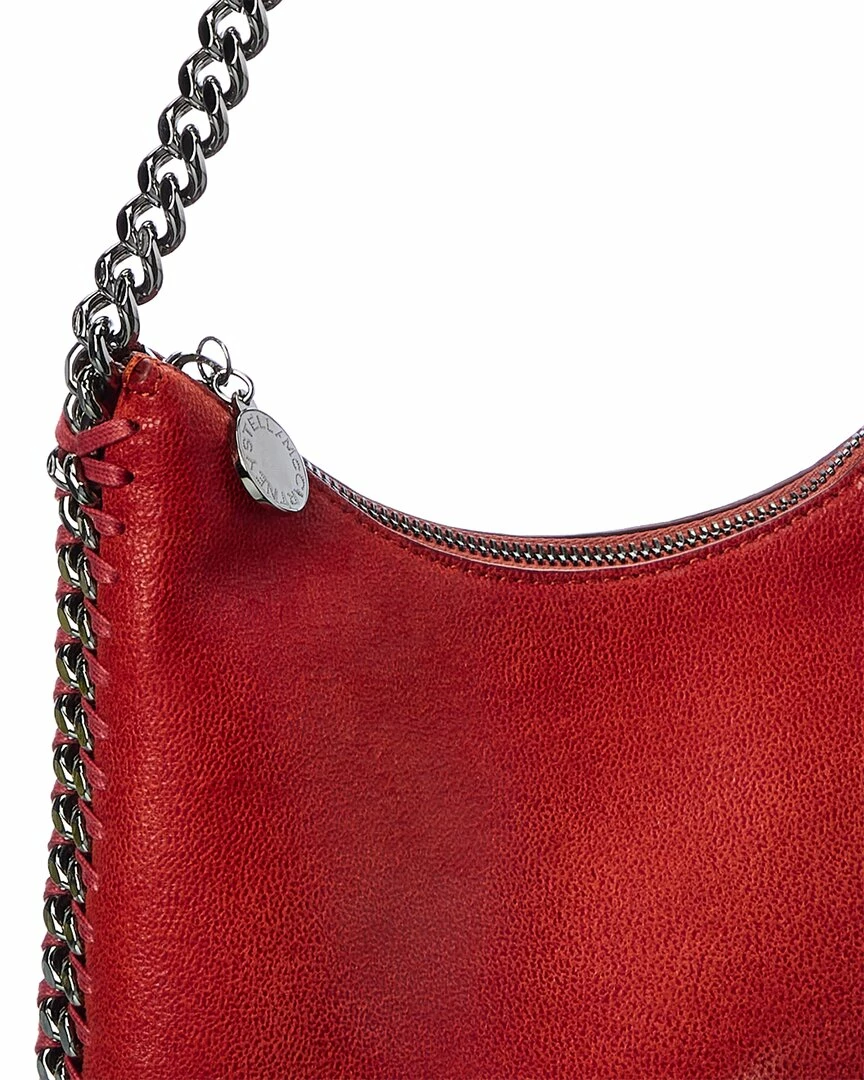 - Falabella Zip Mini Shoulder Bag In Red Vegan-Friendly Faux Suede With Silver-Tone Hardware And Chain Trim