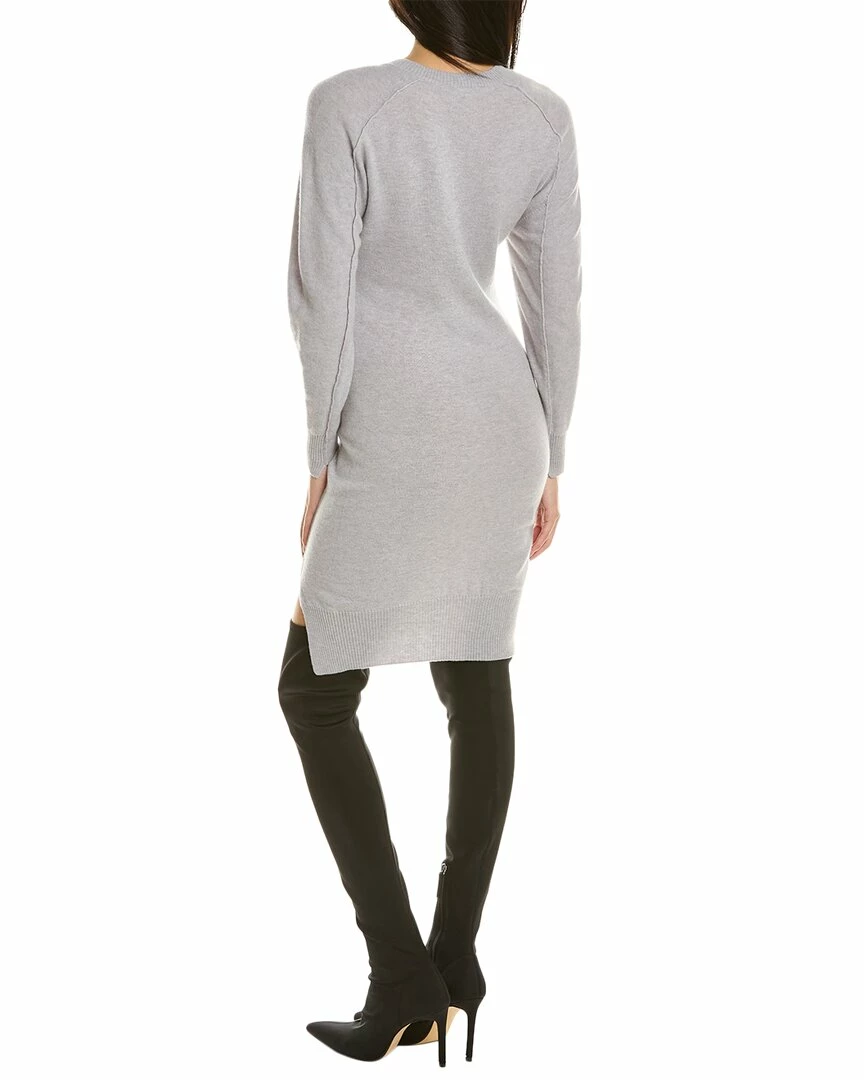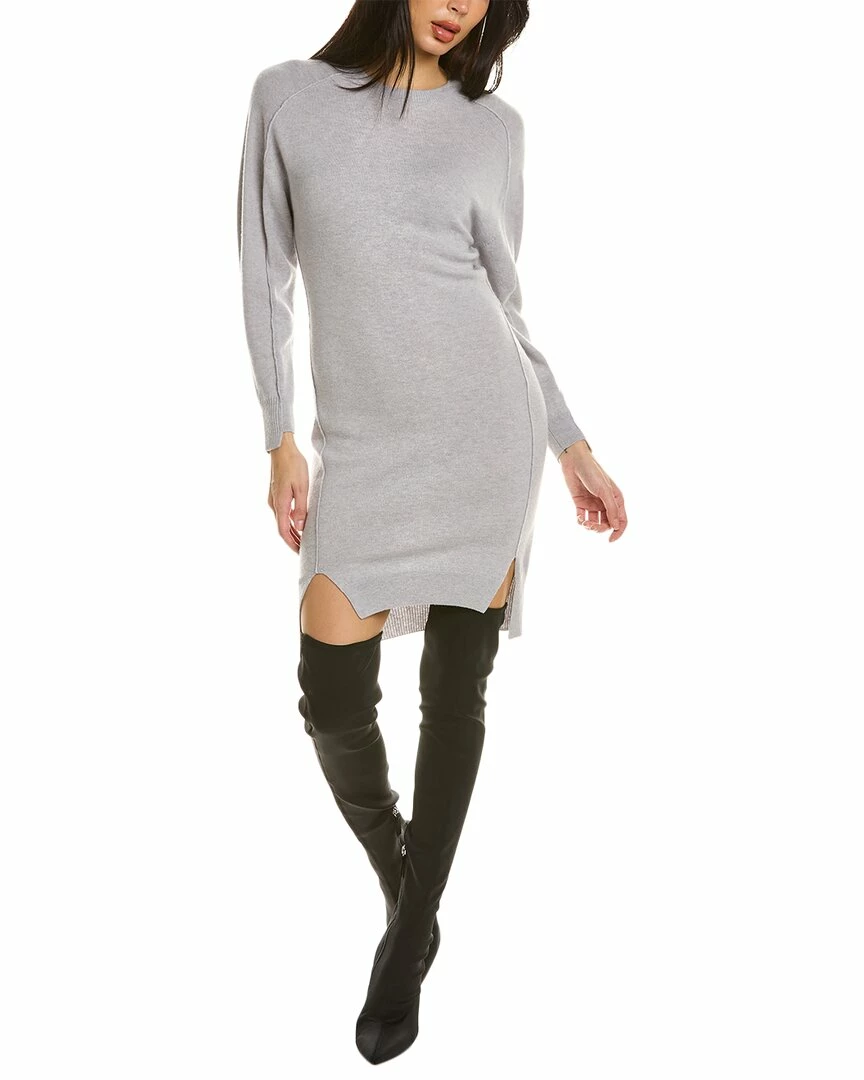 - Forever Stella Wool Sweaterdress In Grey Multicolor With Exposed Seaming, Ribbed Trim, And Step Hem