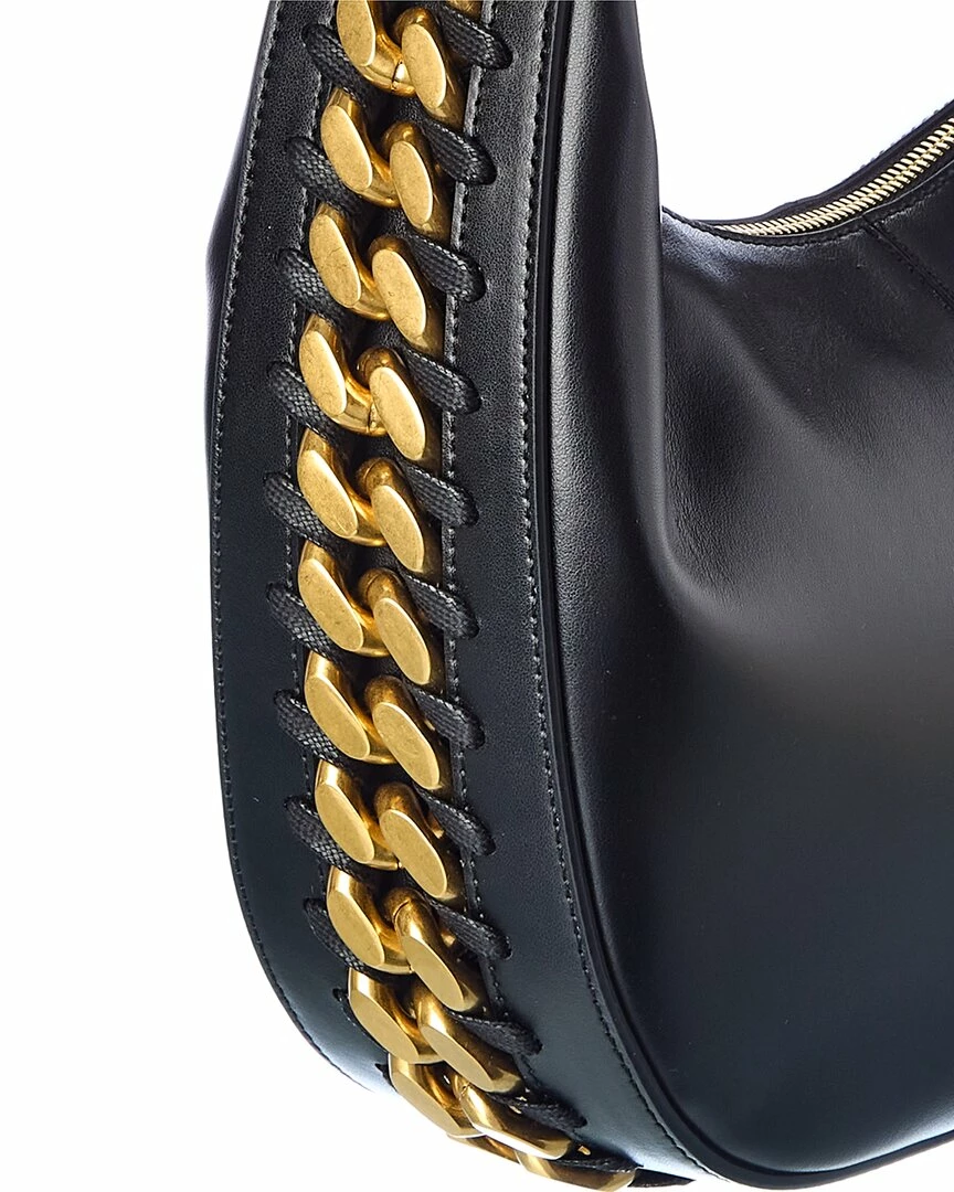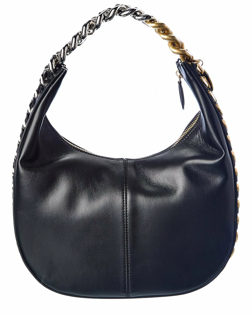 - Frayme Small Zipit Hobo Bag In Black Vegan-Friendly Faux Leather And Gold-Tone And Silver-Tone Hardware With Chunky Chain Trim