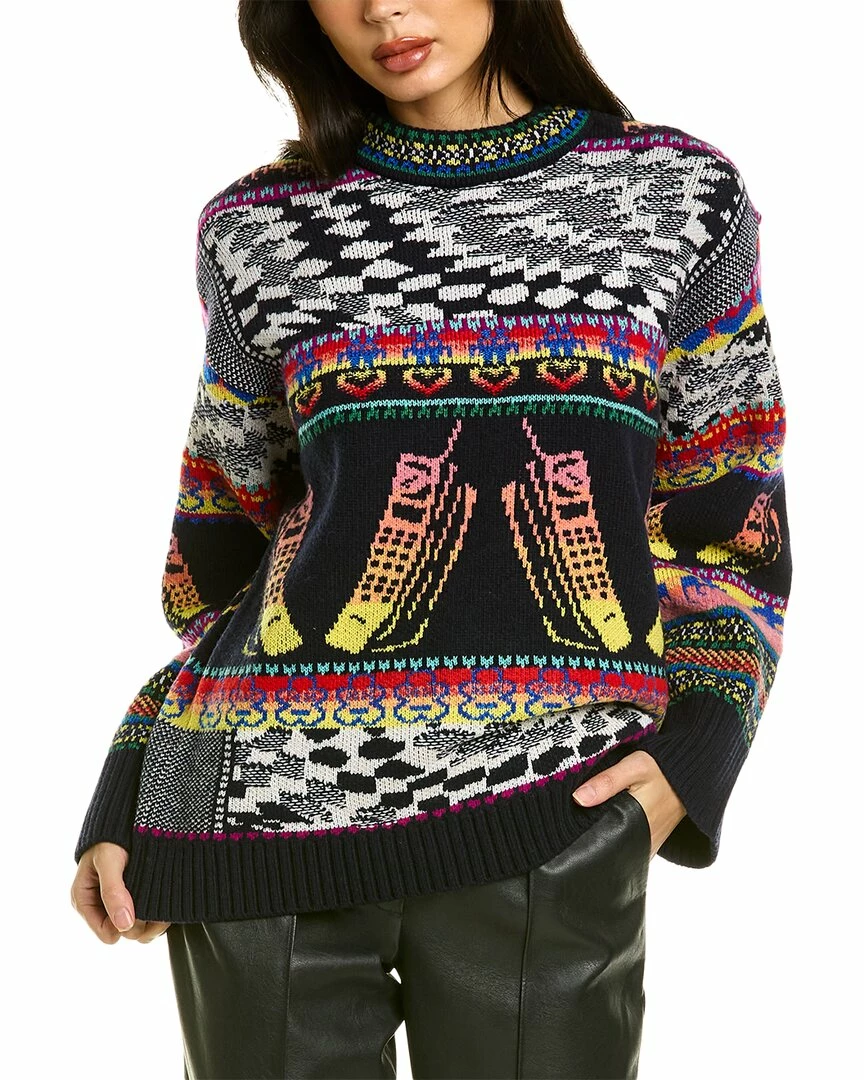 - Keep-In-Touch Wool-Blend Jumper In Multicolor With Dropped-Shoulder Sleeves
