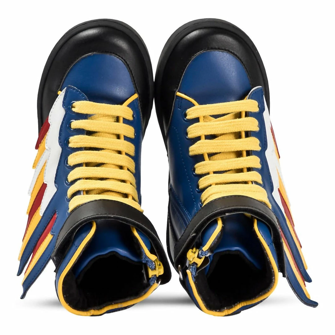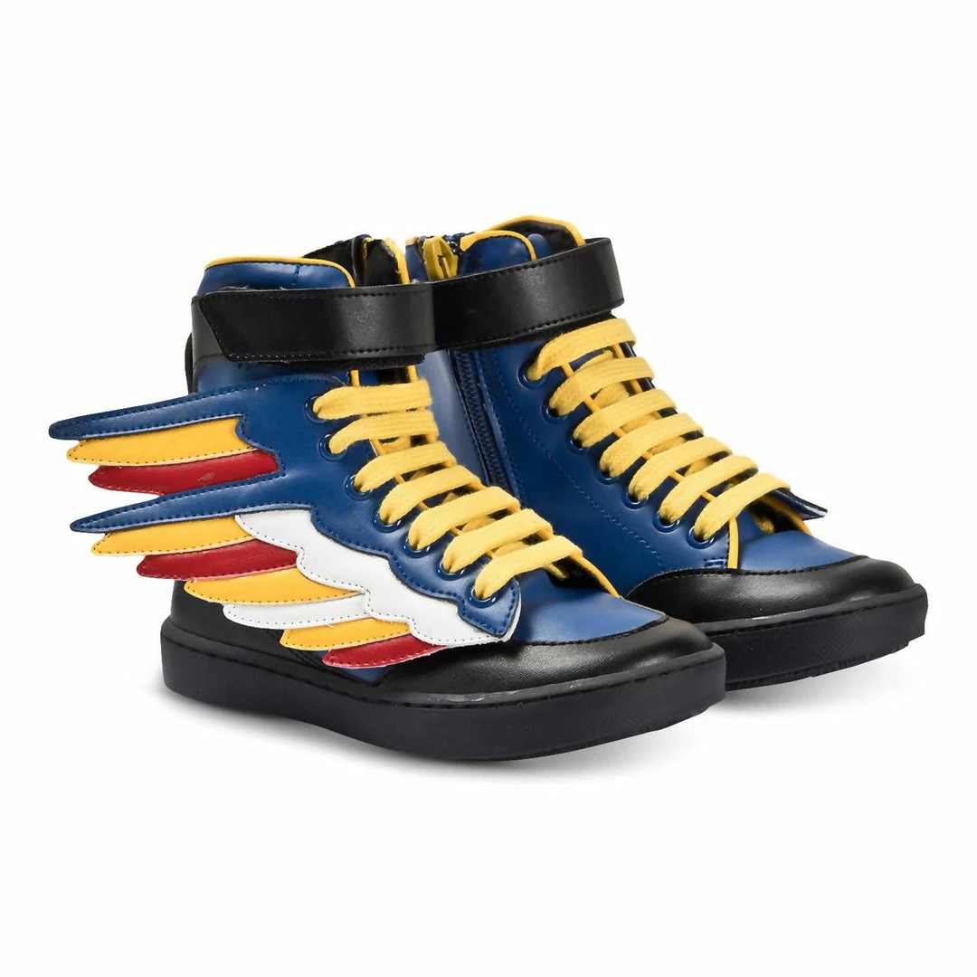 The London Based Brand Stella Mccartney Kids Created The Wing High Top Sneakers In Blue Will Be A Cool Addition To Their Footwear Collection Made From Durable Faux Leather Velcro And Zip Fastening At The Side Lace And Wing Detail Reinforced Feet Fully Lined Nonslip Soles Upper Other Materials Lining Textiles Sole Other Materials