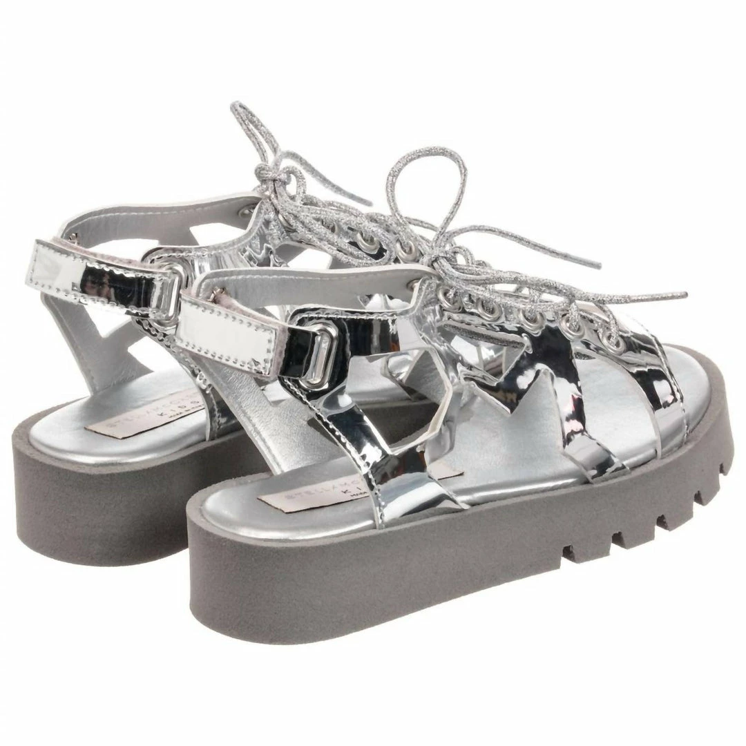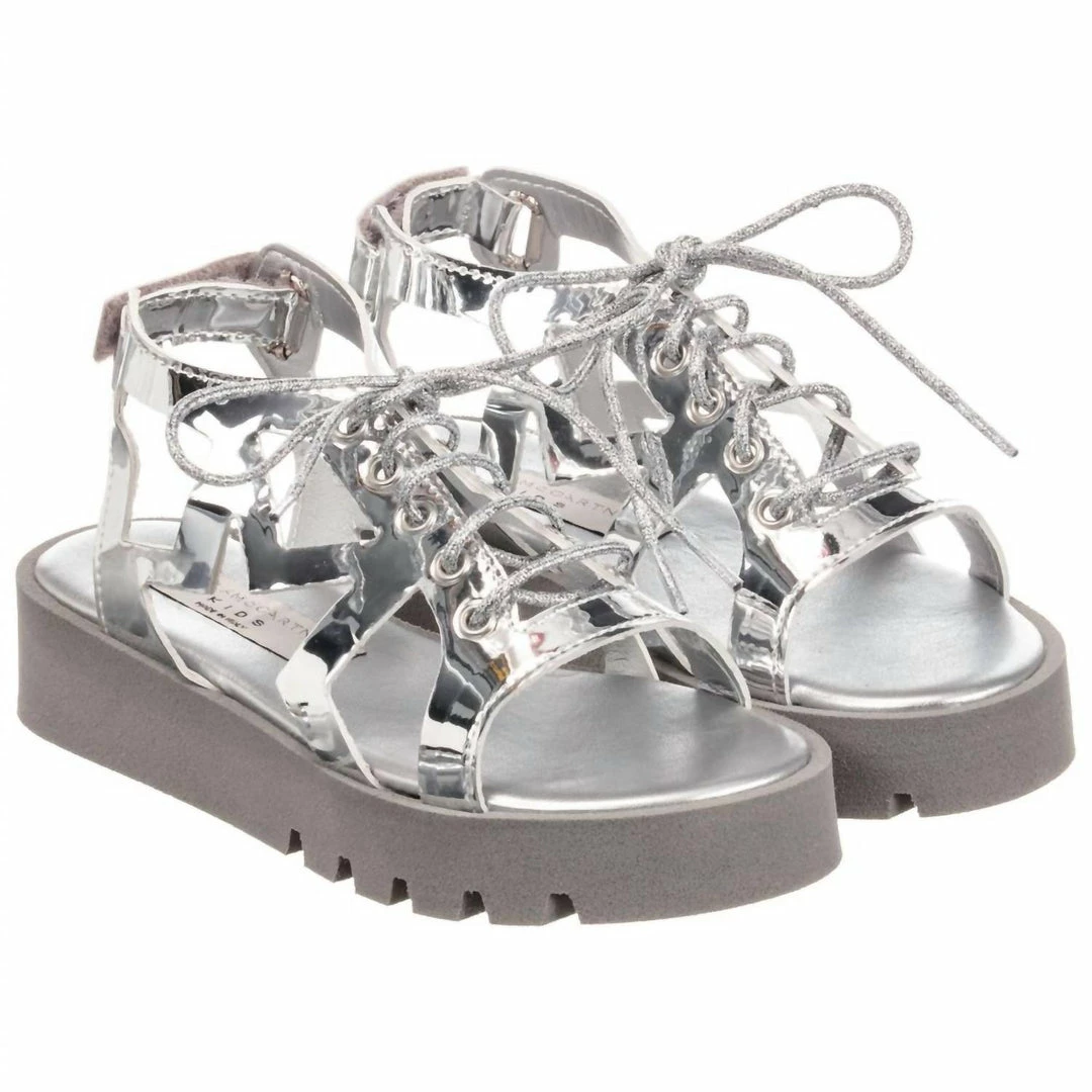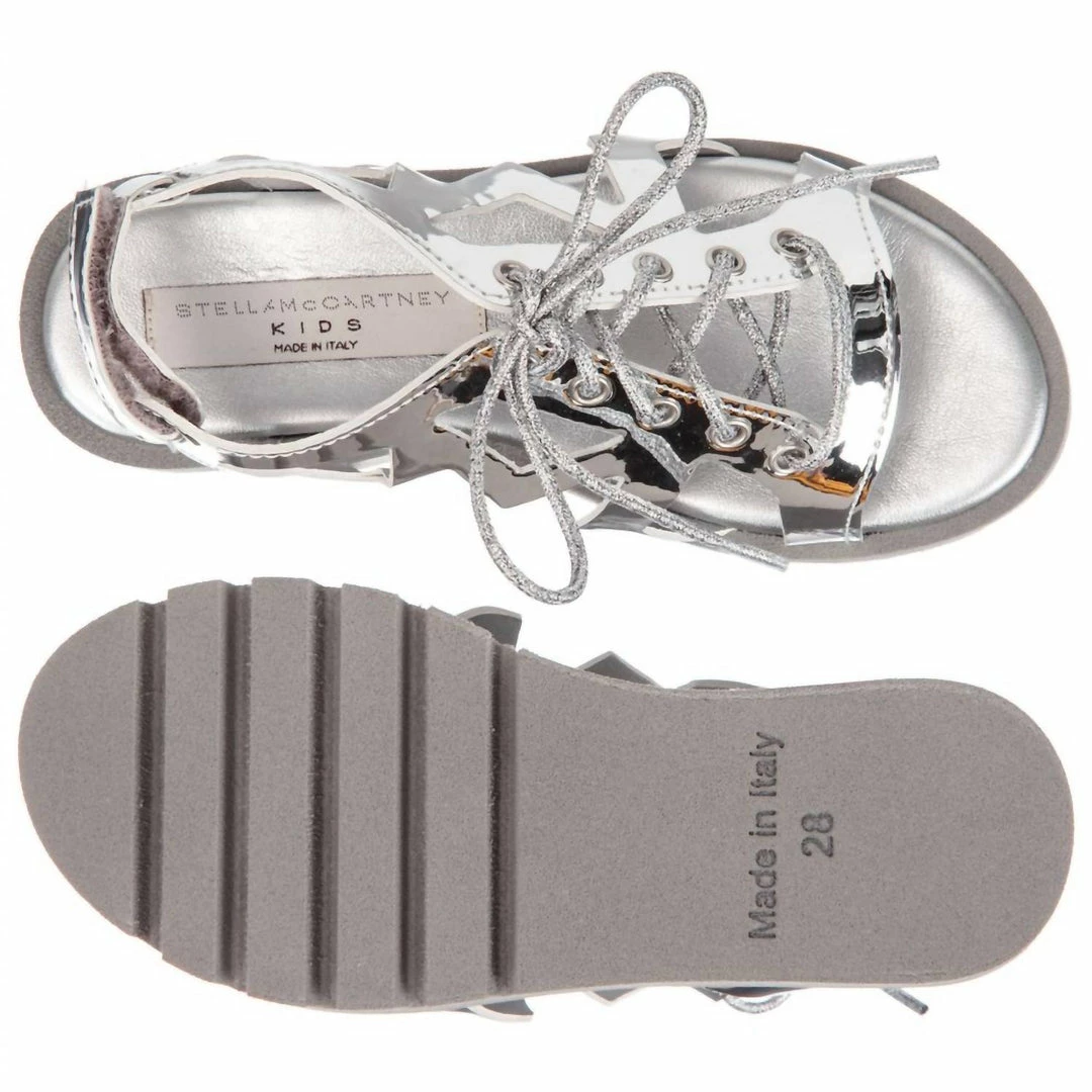 Girls Metallic Silver Sandals Fromstella Mccartney Kids Made From Faux Leather They Have A Cutout Star Pattern With Faux Leather Lining And Nonslip Rubber Soles They Fasten With Glittery Laces And A Velcro Strap At The Back Of The Ankle