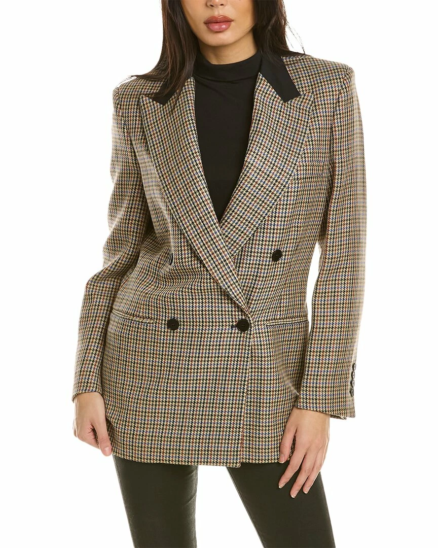 - Meya Wool Blazer In Brown/Red/Blue With Peak Lapel With Grosgrain Collar, Left Chest Pocket, Two Front Welt Pockets, Button Accents At Cuffs And Center Vent At Back Hem