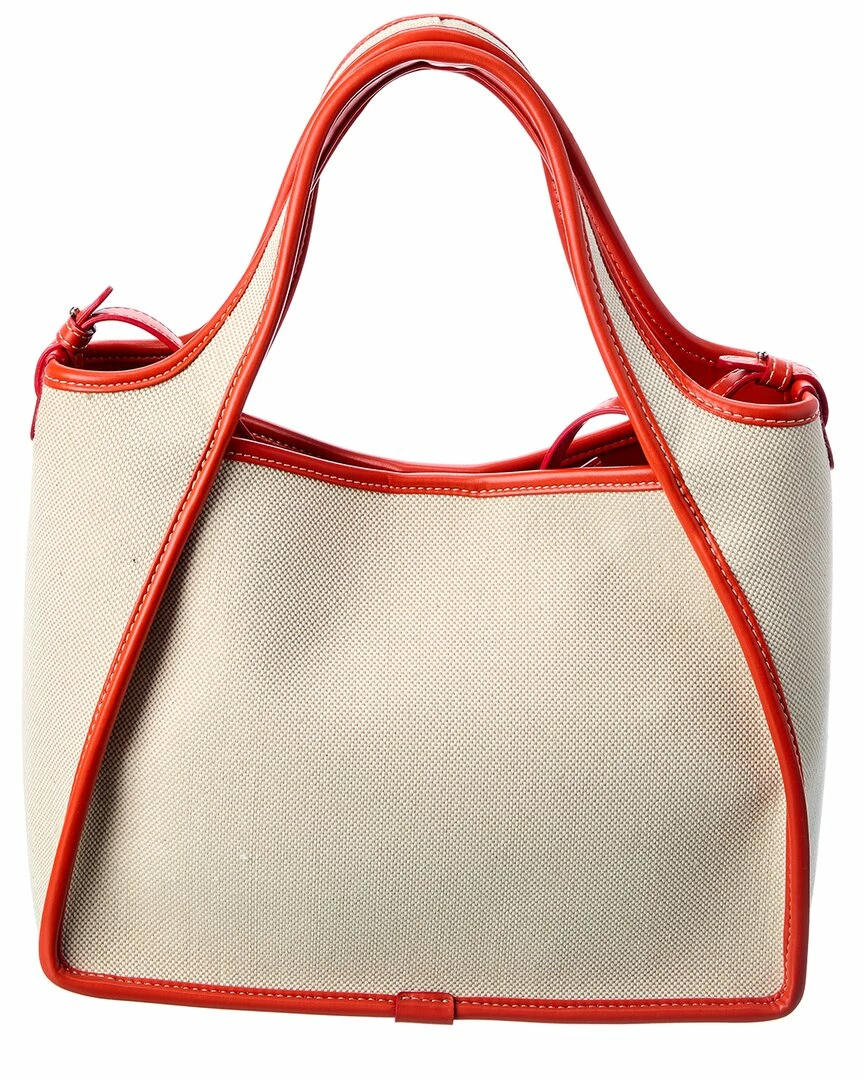 - Perforated Logo Canvas Tote In Natural Canvas And Orange Vegan-Friendly Faux Leather With Silver-Tone Hardware And Perforated Logo Detailing
